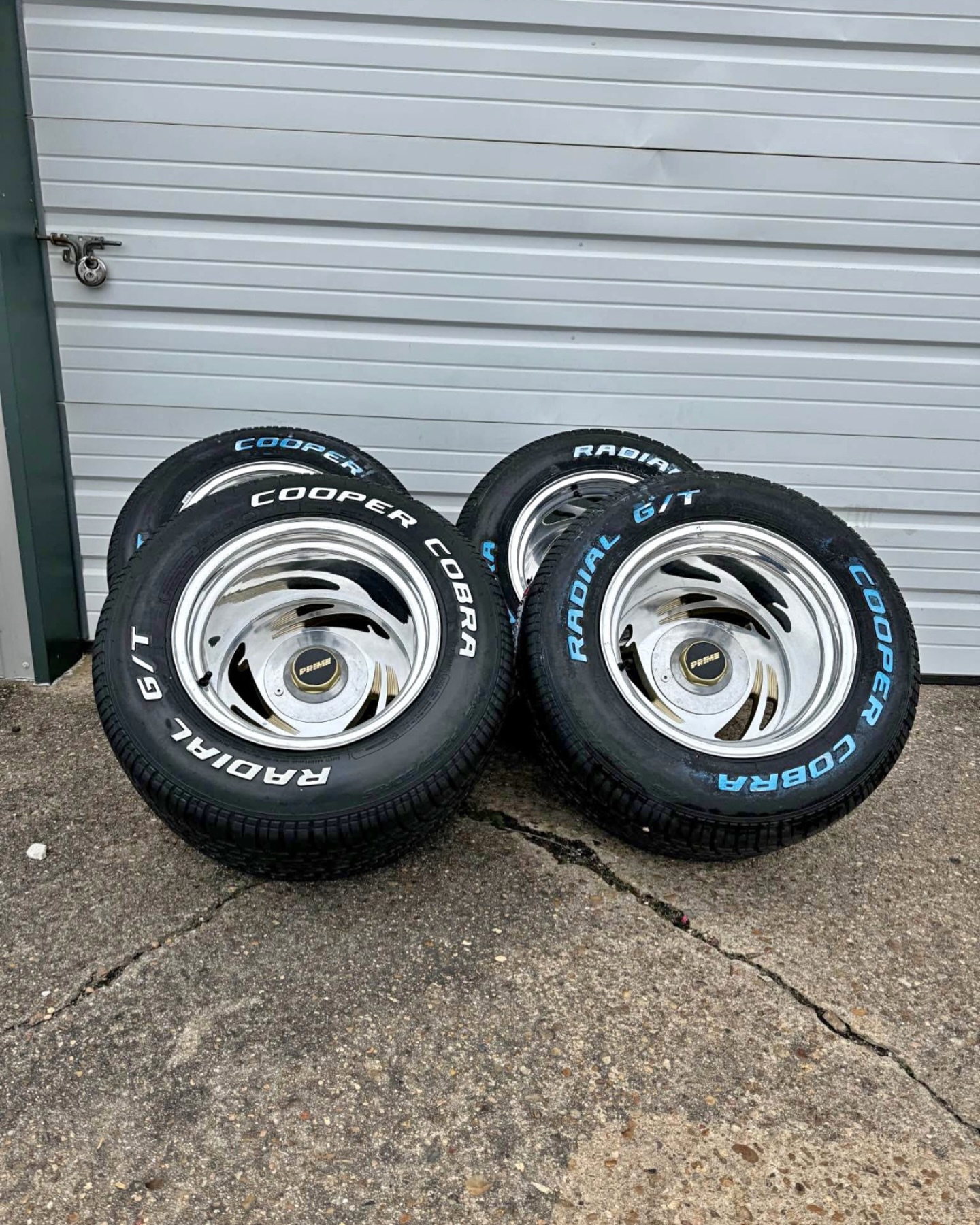 Paired with brand new 295/50/15 Cooper Cobra Radial G/T tires, this setup is ready to mount and drive. The Cooper Cobras add modern traction and handling performance while maintaining a bold raised white letter look that matches the wheels’ classic design.