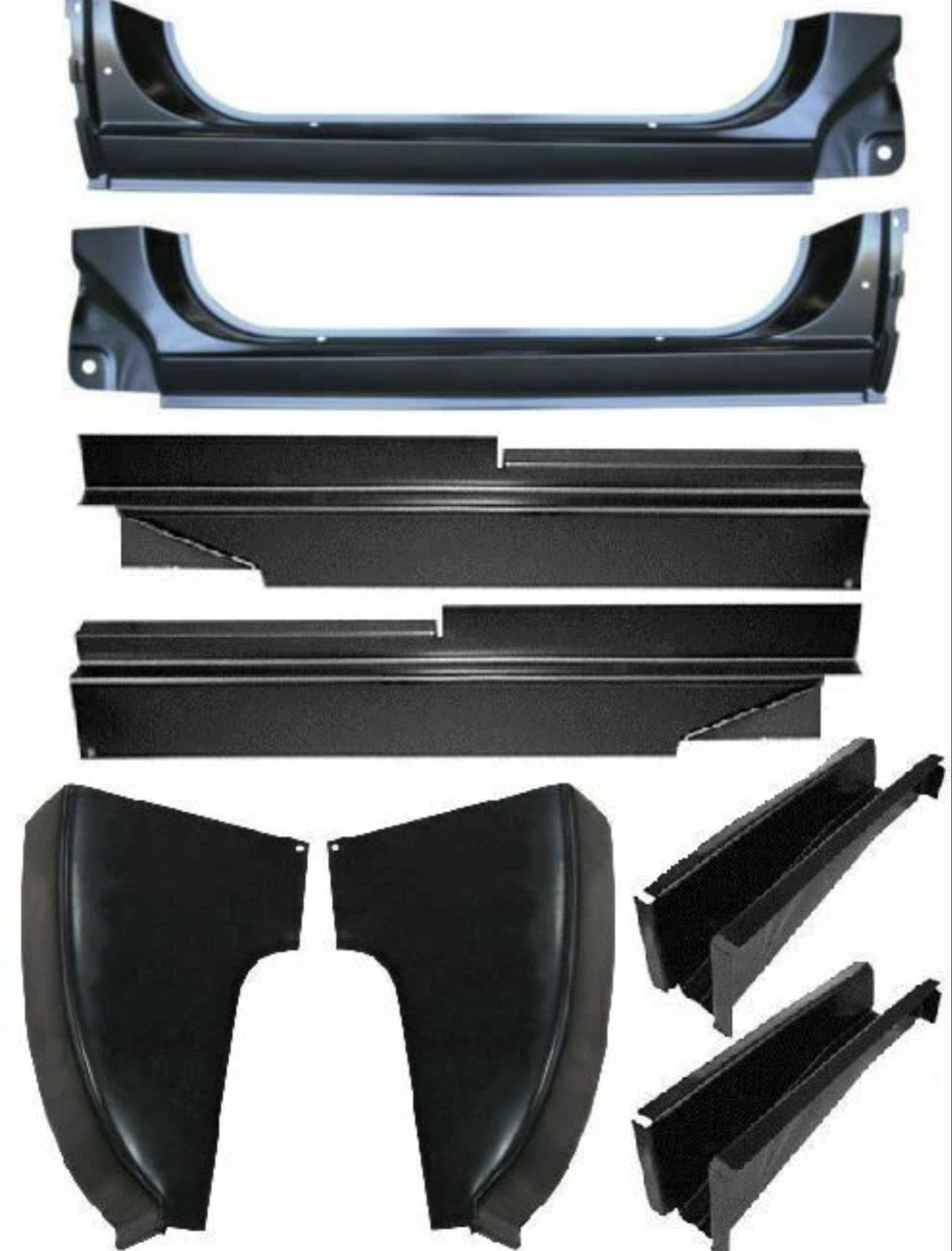 73-87 Chevy/GMC Driver & Passenger Side 8- Peice Patch Panel Kit. Kit includes LH & RH Inner and Outer Rockers, Cab Corners along with Front Cab Supports. Made to OE specs to make the install process painless. The sheet metal is made of heavy duty 18 gauge metal. Sheet metal is black coated to prevent rust.
