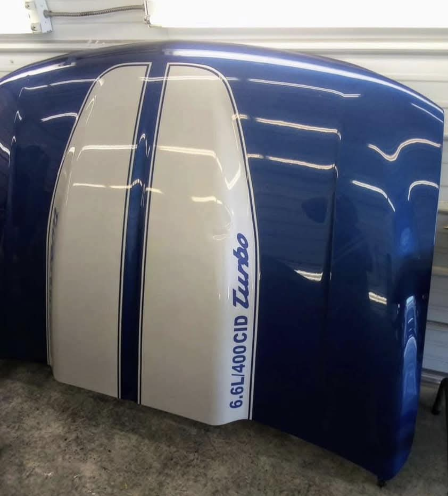 Custom 6.6L/400 CID Turbo Style Cowl Hood – Blue & White – Performance Look